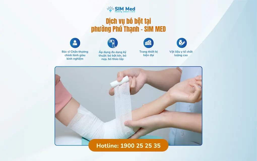 Nếu mọi người có nhu cầu sử dụng Dịch vụ bó bột tại phường Phú Thạnh và khu vực TP.HCM, hãy liên hệ ngay với SIM MED thông qua Hotline 1900 25 25 35 để được hỗ trợ đặt lịch khám sớm nhất nhé!