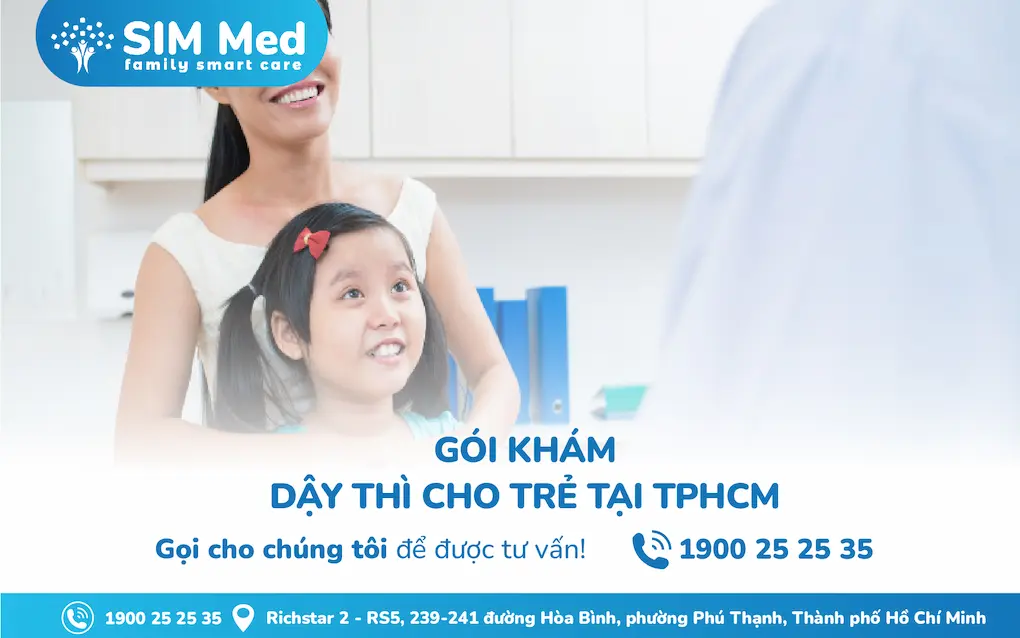 Nếu bố mẹ có nhu cầu sử dụng gói khám dậy thì cho trẻ tại TP.HCM, hãy hệ ngay với SIM MED thông qua Hotline 1900 25 25 35 để được hỗ trợ và đặt lịch khám sớm nhất nhé!