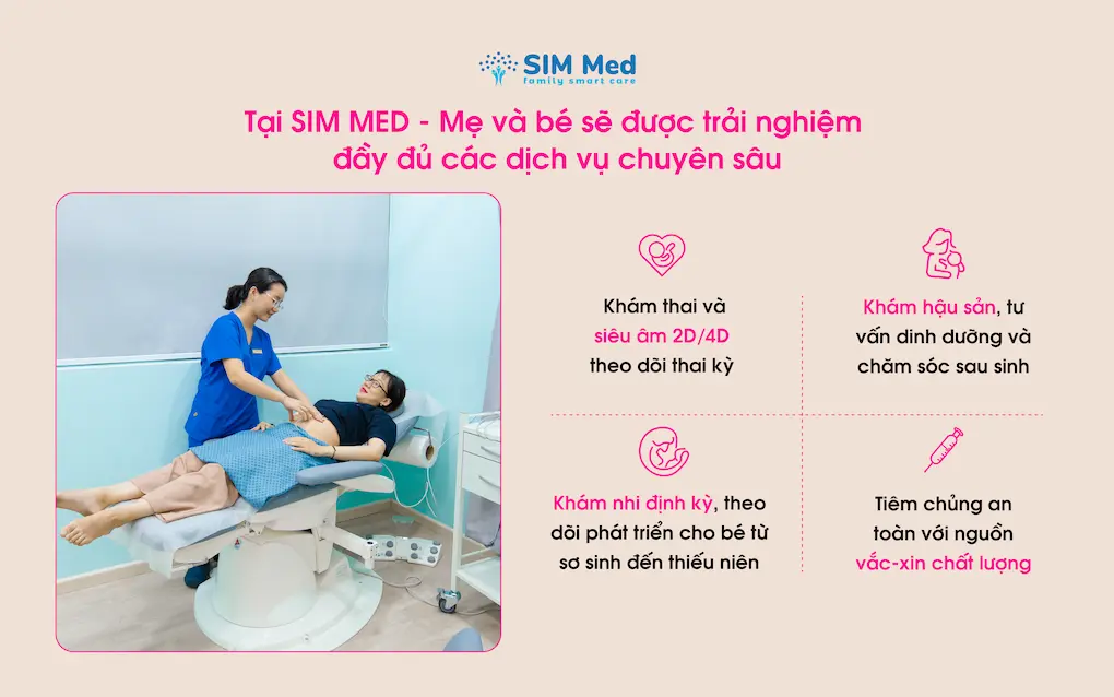 Tại SIM MED - phòng khám sản nhi chất lượng hàng đầu TP.HCM, mẹ và bé sẽ được trải nghiệm đầy đủ các dịch vụ chuyên sâu như: