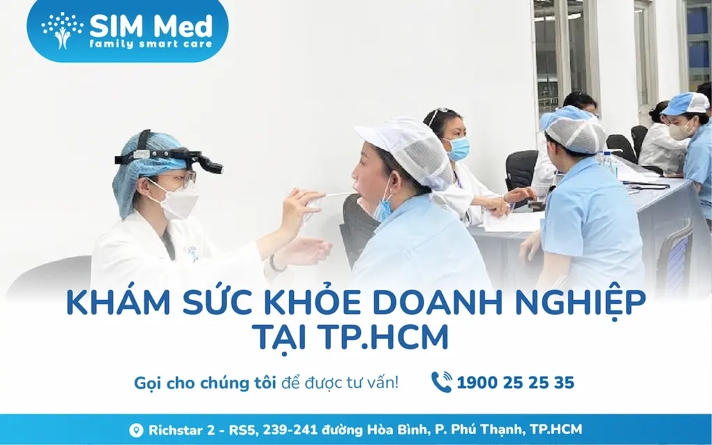 Hiện nay, SIM MED là một trong những cơ sở y tế tiên phong cung cấp dịch vụ khám sức khỏe doanh nghiệp tại TP.HCM. Với phương châm luôn đặt sức khỏe người lao động làm ưu tiên, SIM MED đã và đang đồng hành cùng nhiều doanh nghiệp trong việc tổ chức thăm khám sức khỏe định kỳ, đảm bảo chất lượng chuyên môn cao và tuân thủ đúng theo quy định của pháp luật Việt Nam.