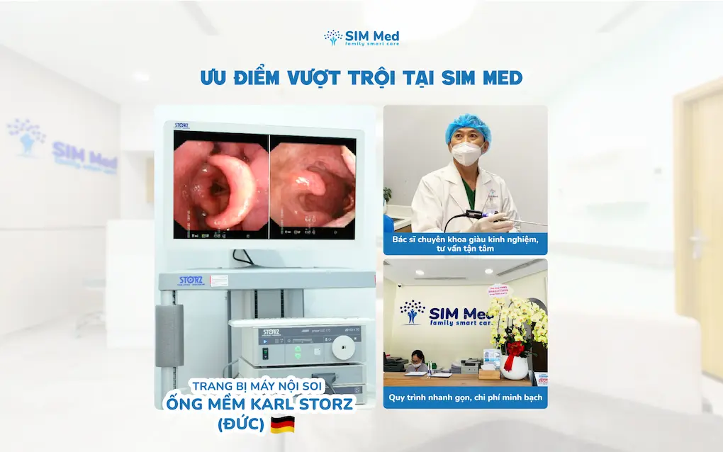 Phòng khám Đa khoa SIM MED là một trong những cơ sở y tế được trang bị máy nội soi ống mềm Karl Storz (Đức) – thiết bị hiện đại bậc nhất trong chẩn đoán và điều trị các bệnh lý Tai Mũi Họng. Nhờ công nghệ tiên tiến này, dịch vụ nội soi tại SIM MED mang đến trải nghiệm khác biệt cho người bệnh: