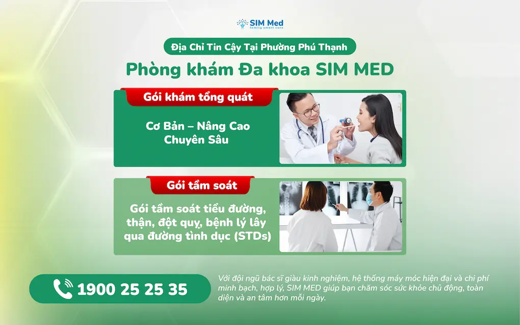 Nếu quý khách hàng có nhu cầu sử dụng khám sức khỏe tổng quát cho người lớn tại TP.HCM, hãy liên hệ với Phòng khám đa khoa SIM Med thông qua hotline: 1900 25 25 35 để được tư vấn đặt lịch thăm khám sớm nhất nhé!