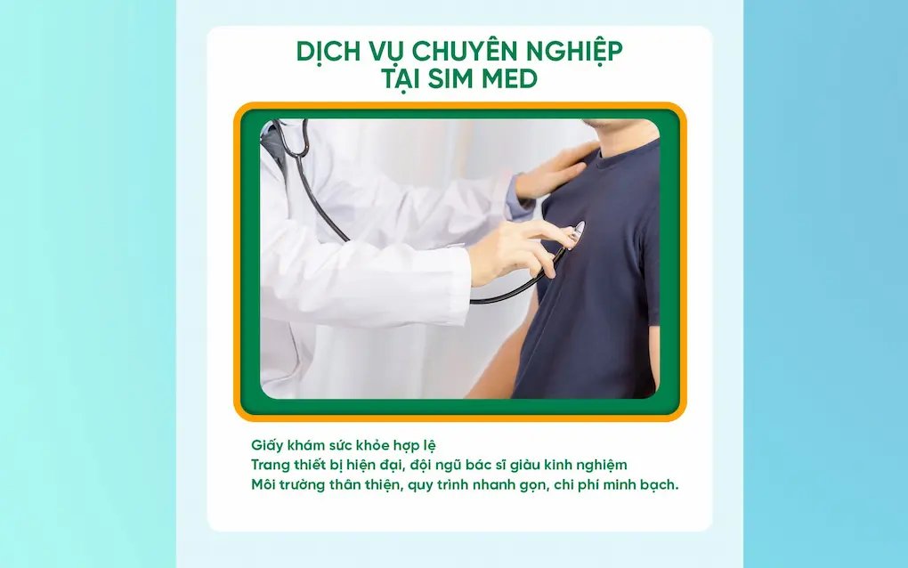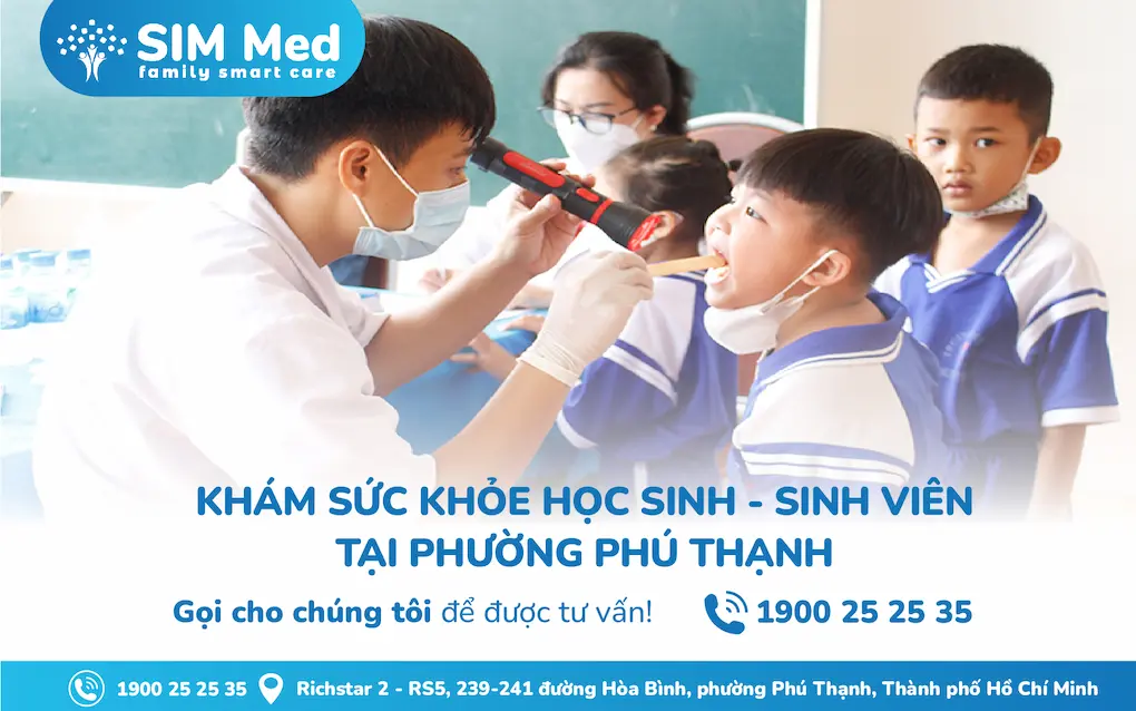 Phòng khám Đa khoa SIM Med hiện là cơ sở y tế uy tín chuyên cung cấp các gói khám khám sức khỏe học sinh - sinh viên tại Phường Phú Thạnh (quận Tân Phú cũ) và khu vực TP.HCM. Với hệ thống chuyên khoa đa dạng như Nội khoa, Ngoại khoa, Khám tổng quát, Xét nghiệm, Chẩn đoán hình ảnh... đội ngũ bác sĩ tại SIM MED sẽ giúp các em kiểm tra sức khỏe một cách toàn diện, hỗ trợ phát hiện sớm các vấn đề tiềm ẩn và có phương án can thiệp phù hợp.